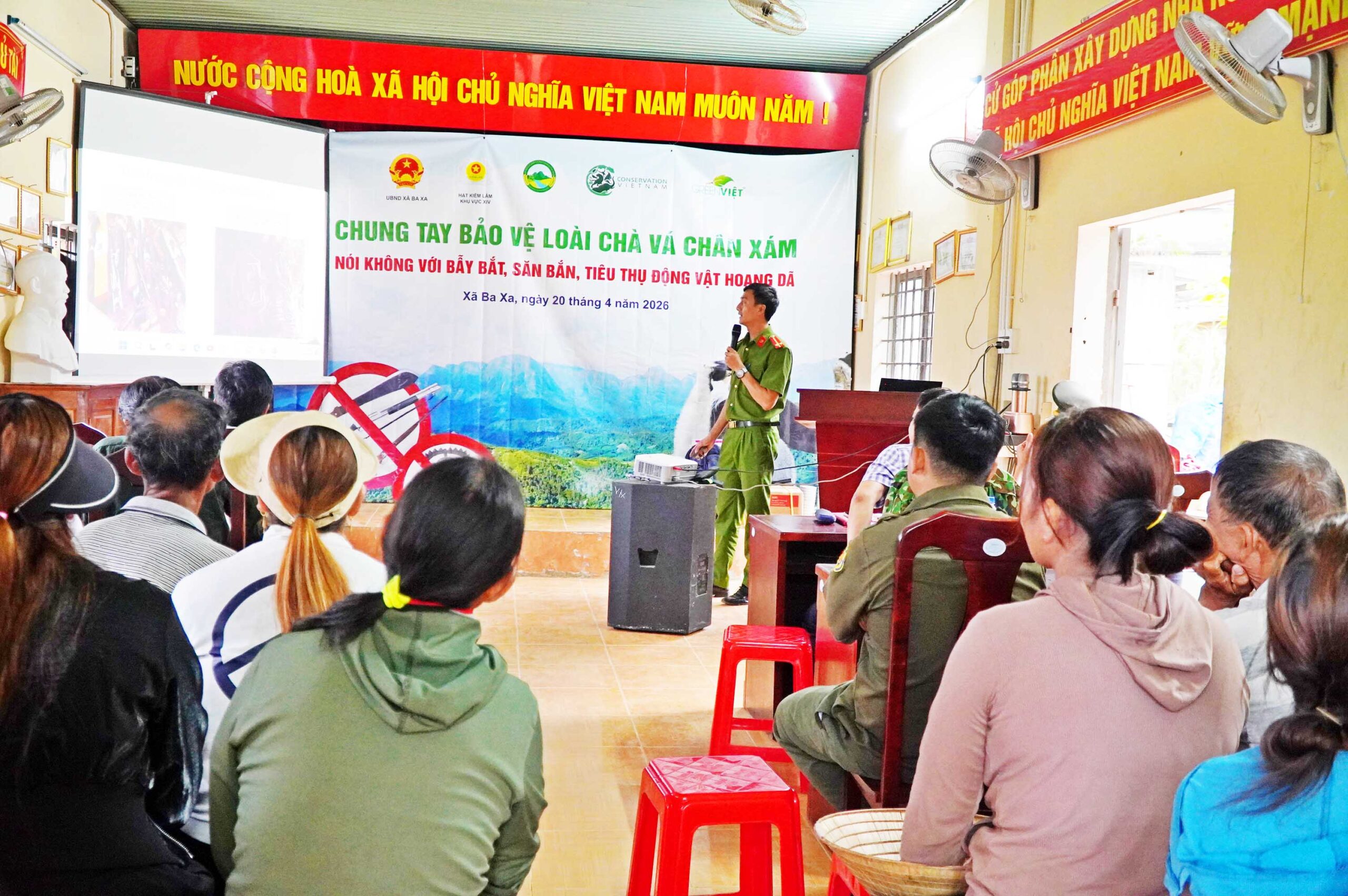 Chiều ngày 20/4/2026, tại thôn Nước Chạch, xã Ba Xa, UBND xã Ba Xa phối hợp với Trung tâm Bảo tồn đa dạng sinh học Nước Việt Xanh (GreenViet), Hạt Kiểm lâm khu vực XIV, Ban Quản lý Rừng phòng hộ Hạ Thạch Nham, Công an xã Ba Xa cùng các đơn vị liên quan đã tổ chức Chương trình “Tuyên truyền, vận động người dân giao nộp súng tự chế và công cụ bẫy săn bắt động vật hoang dã”.