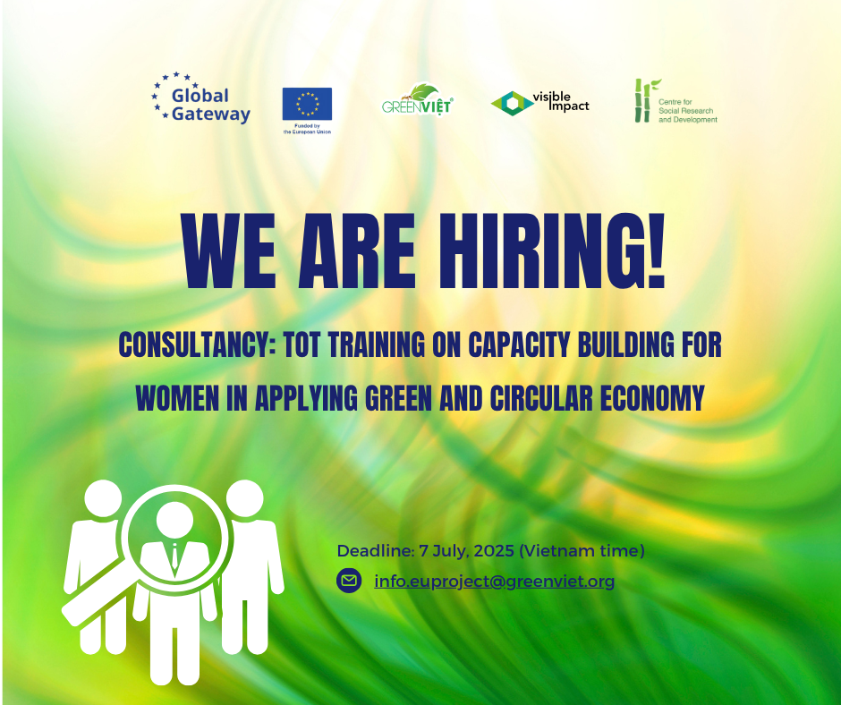 • Địa chỉ và thời hạn nhận hồ sơ: Nhận hồ sơ qua email admin@greenviet.org trước ngày 20/10/2025. Ưu tiên ứng viên nộp hồ sơ sớm và trước thời hạn.
